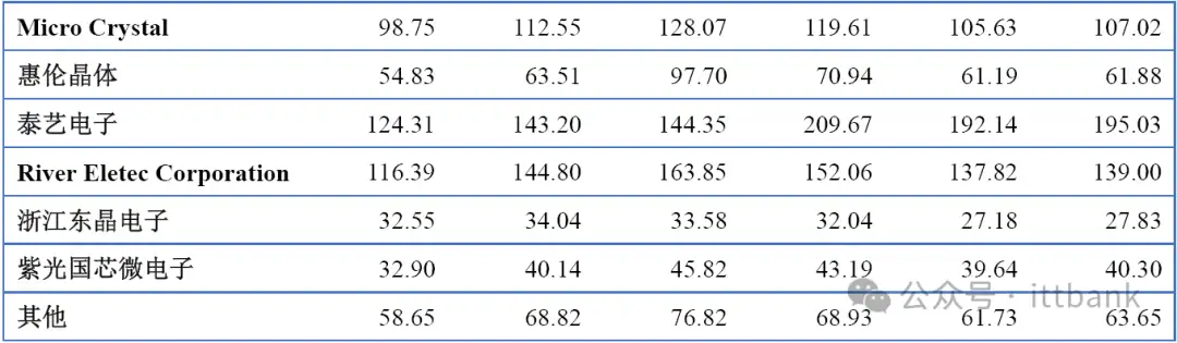 2023年全球主要生产商晶体和振荡器收入排名(百万美元)