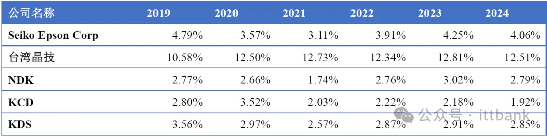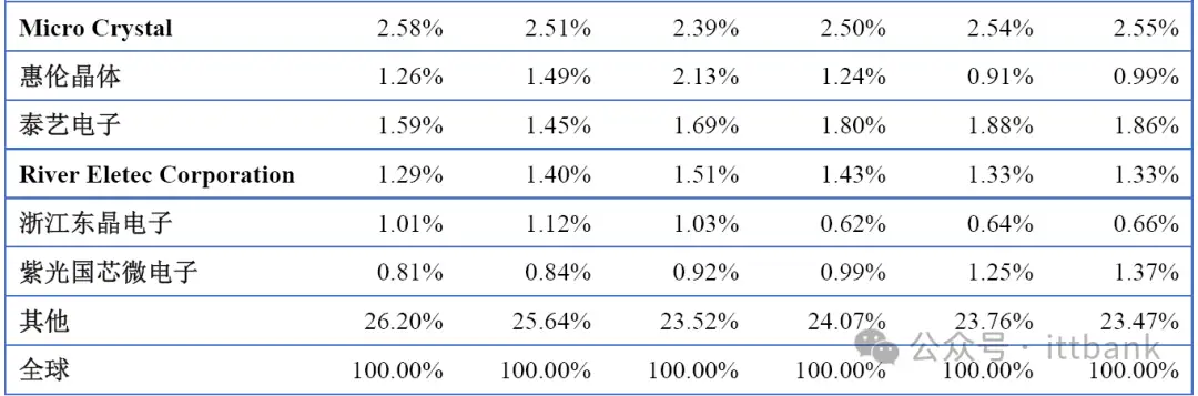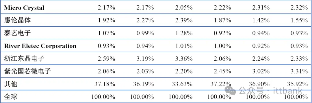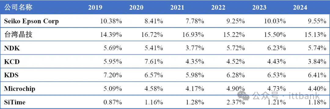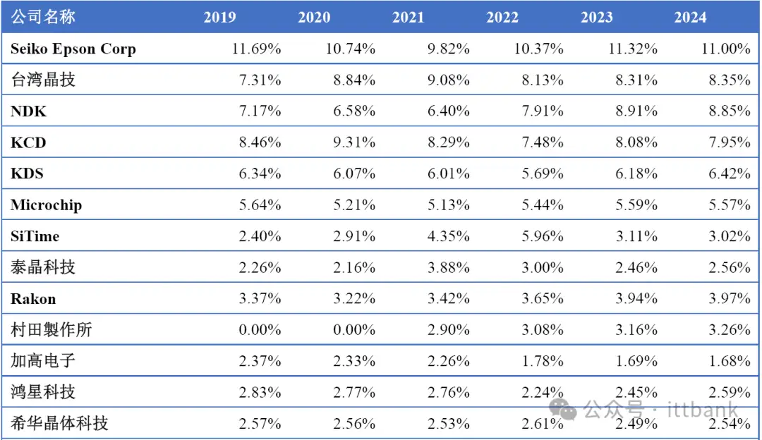 全球市场主要厂商晶体和振荡器销量市场份额(2019-2024)