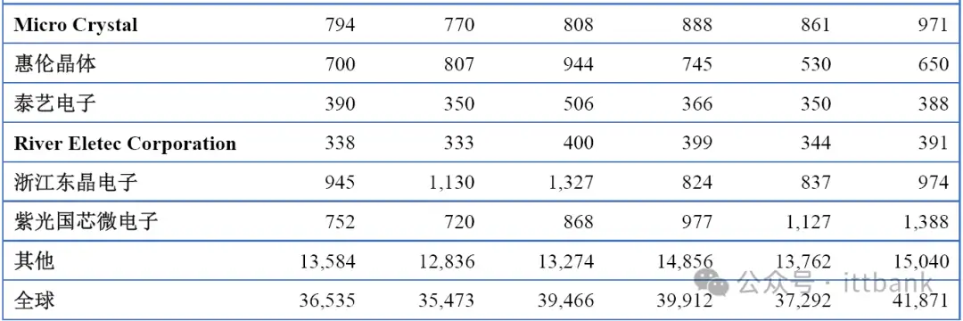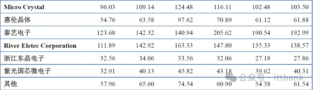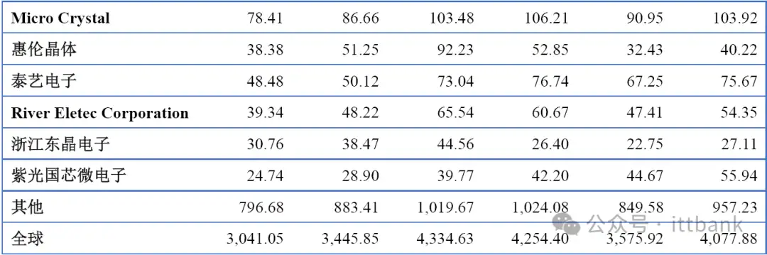 全球市场主要厂商晶体和振荡器销量(2019-2024)&(百万只)
