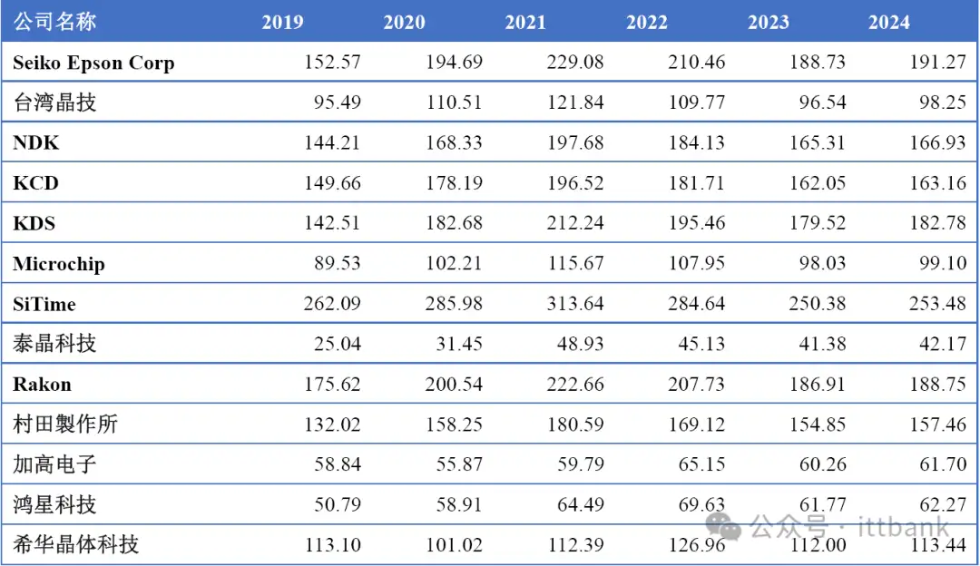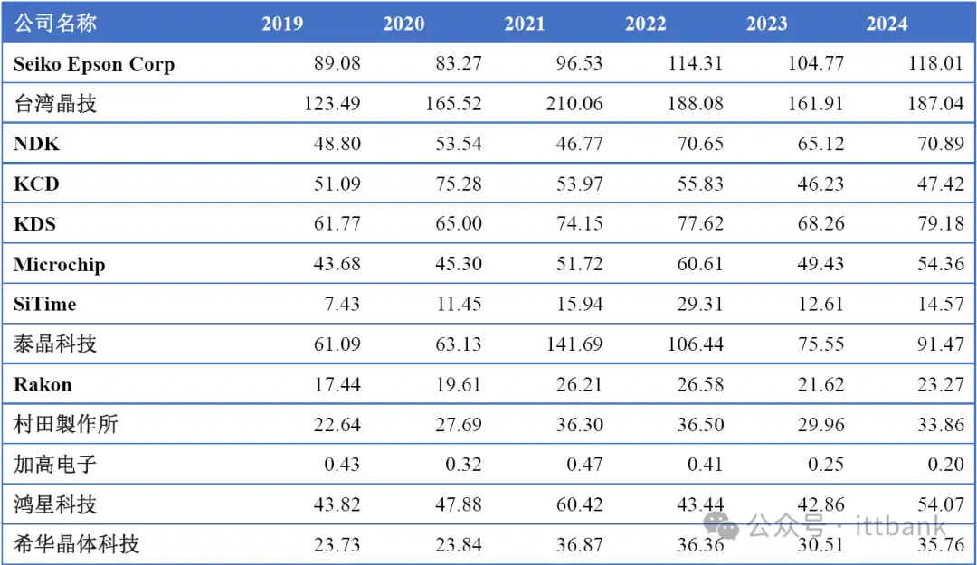 全球市场主要厂商晶体和振荡器销售收入(2019-2024)&(百万美元)