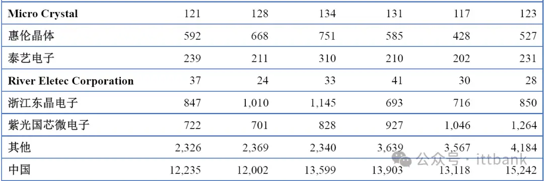 日本和中国台湾是主要的晶体和振荡器生产地区,因此每年会出口大量产品到其他地区。中国产量不足以满足国内消费,因此每年也会从日本和中国台湾进口大量产品。