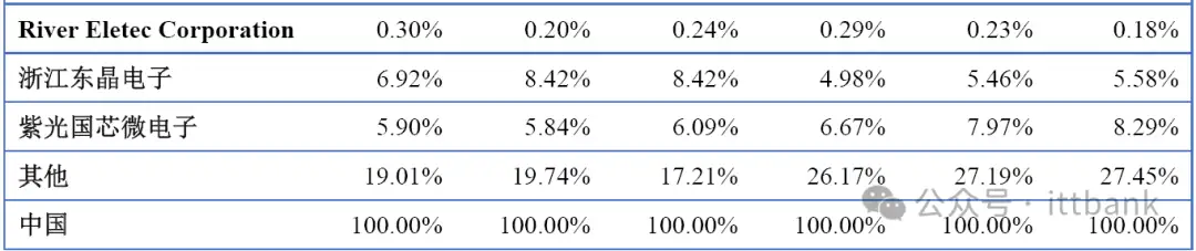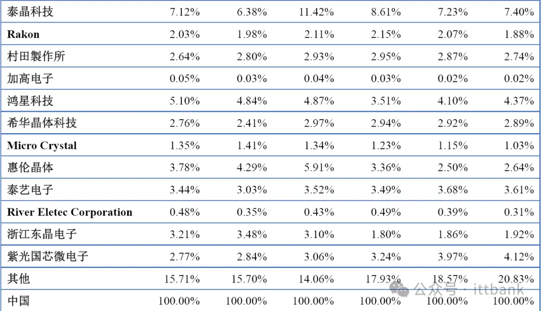 中国市场主要厂商晶体和振荡器销量市场份额(2019-2024)