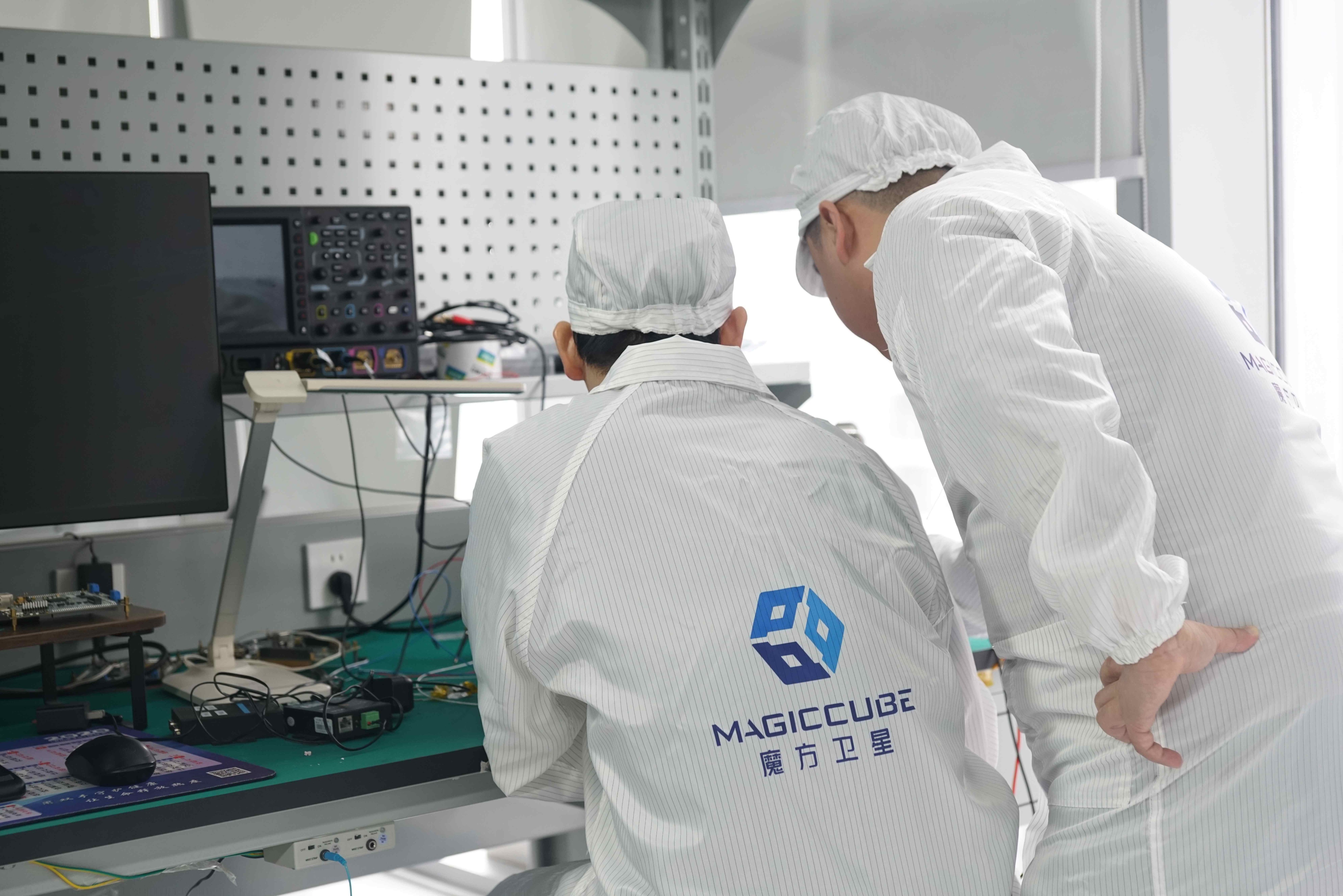 魔方卫星技术人员在深圳研发总部开展卫星研制测试工作。 (受访者供图)